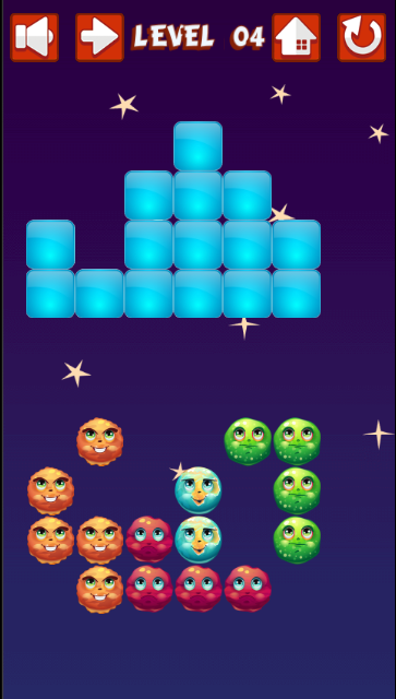 The player must drag, move and drop planet puzzle onto the right spot to completely fill a blocks on the main grid.