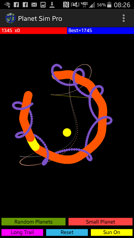 Play with planetary orbits in this fun exciting space physics sandbox. Try to make a solar system full of asteroids, moons, dwarf planets, giant planets, and suns. Touch the screen to add a planet. Drag your finger across the screen to give a planet a little bit of velocity. Enough speed will cause your planet to orbit. When planets collide, they combine together into a larger planet.