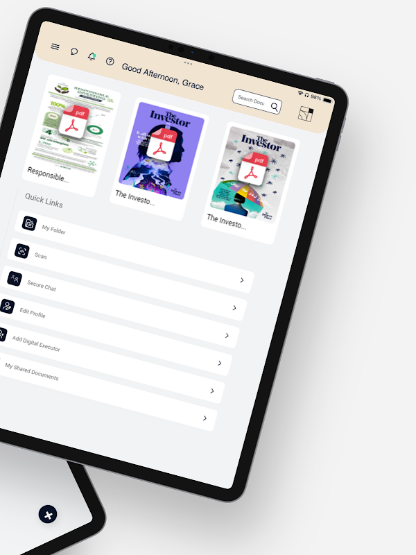 Protected by ultra-secure, state-of-the-art technology, all your documents are available to you, wherever you are, offering you the value of secure collaboration and information sharing, to aid you in your life and financial planning.