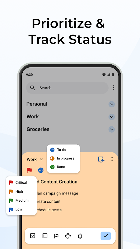 Sort and organize your tasks into custom groups like work, study, personal, or health so everything stays clear and easy to manage.