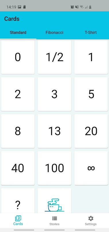 Application for Planning Poker with a modern design. Allows you to manage different sets of cards. Also allows you to write and manage stories with ease. It is completely free with no adds or payments. It has dark/light modes.