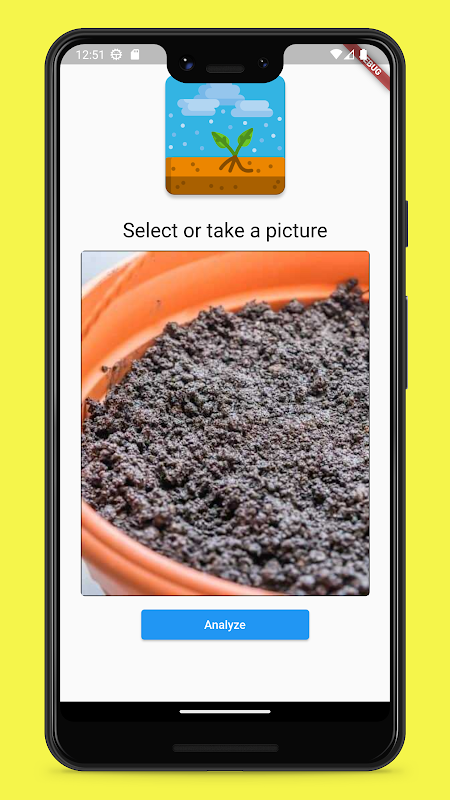 Plant's AI is a mobile application that evaluates pictures captured by your device's camera and assesses the moisture content of the soil (dry or wet).