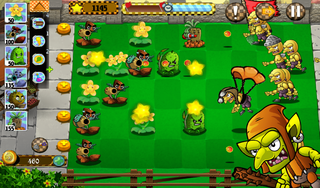The newest goblin warriors carry shields and wear helmets that will protect them from your Green Warriors onslaught, bearing down like relentless tanks. Some will come on the wind with great wings of leather, soaring over your plants to drop in amidst the ranks and sow chaos, while others have developed powerful legs and will simply leap over the front lines of the Garden Kingdom's army.