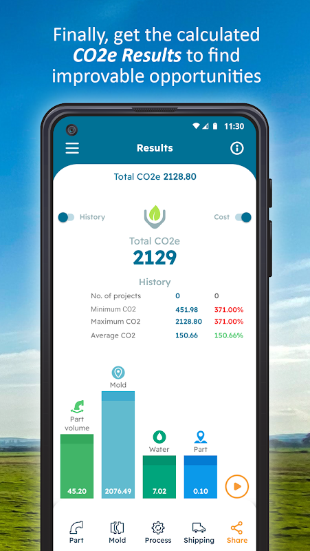 Calculate how much CO2e is generated from part design to production