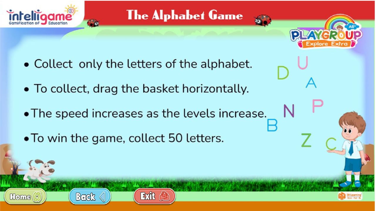 1. Alpha Match: It is a pre-cursor to associating a items with their alphabet