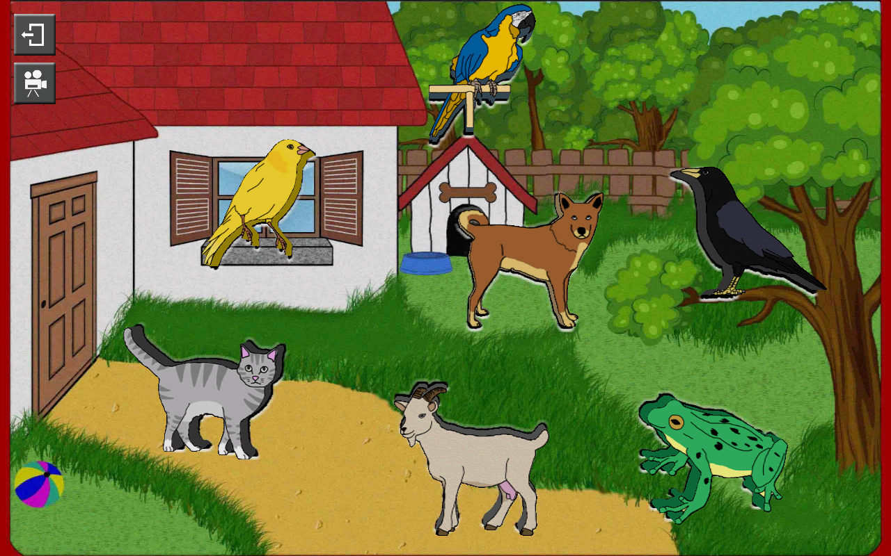 * Dog, cat, parrot, canary, crow, frog, goat.