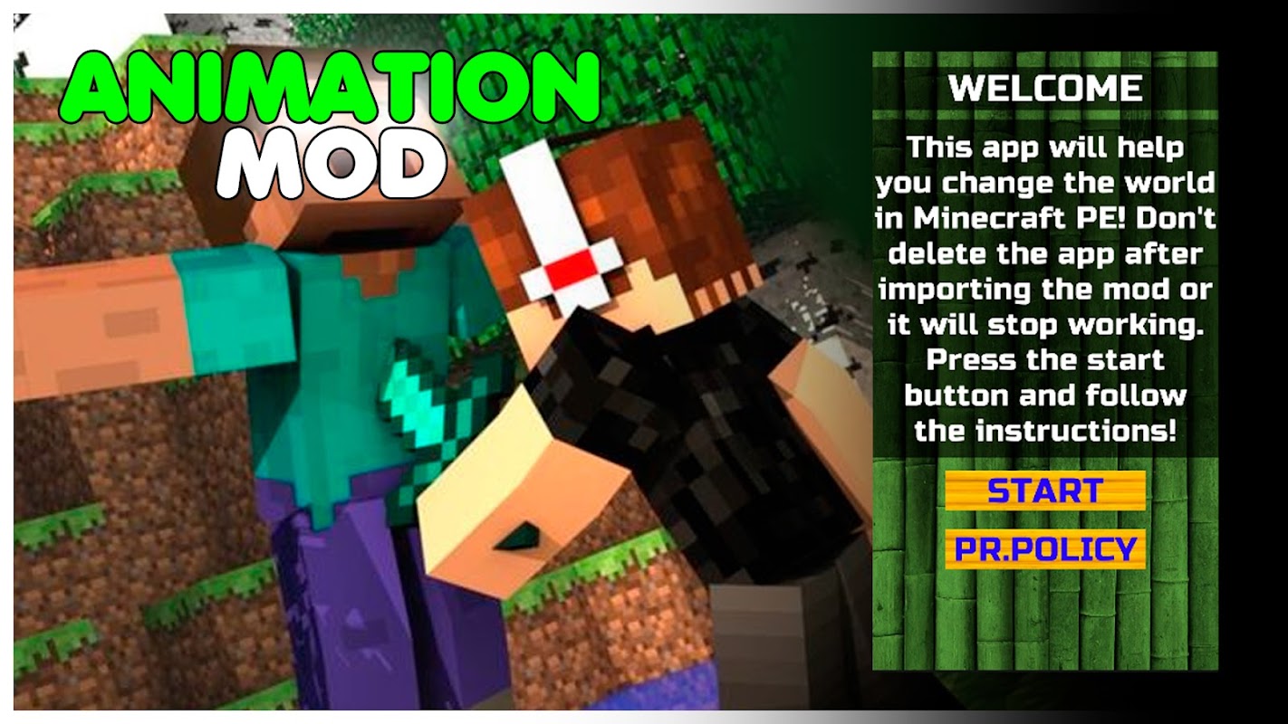 ❗DISCLAIMER:❗ This is an unofficial app. Name, brand and assets are the property of the owner Mojang AB. The application helps to install and familiarize yourself with the mod for the game Minecraft, this is not a game, but an add-on with instructions! If you feel there are trademark violations which don't fall under the "fair use" rules, please contact us by email.🥇
