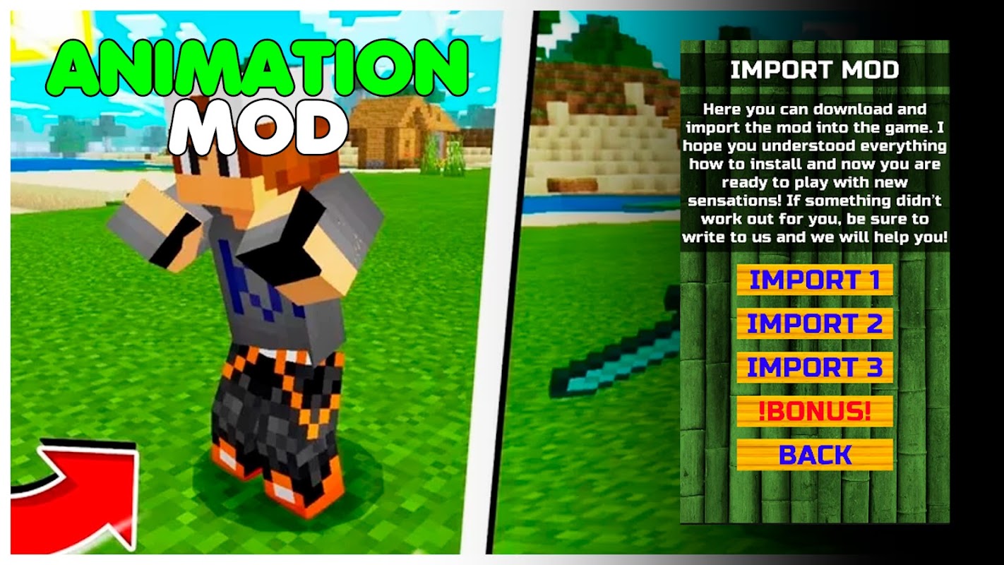 Player Animation Mod for Minecraft PE will help you import addons into MCPE game