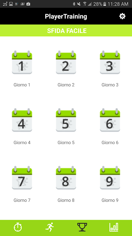 You can choose among 19 training programs divided into 4 categories: Strength, Running, Core Stability and Prevention. You can also use the Challenge Option that will give you different training sessions every day for a period of 2/3 weeks. The Challenge Option is studied for players who need to get back into good condition before the usual preparatory phase of a team or after a period of inactivity.