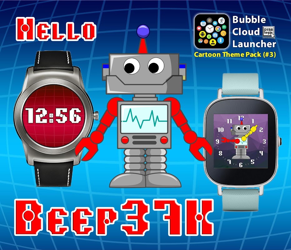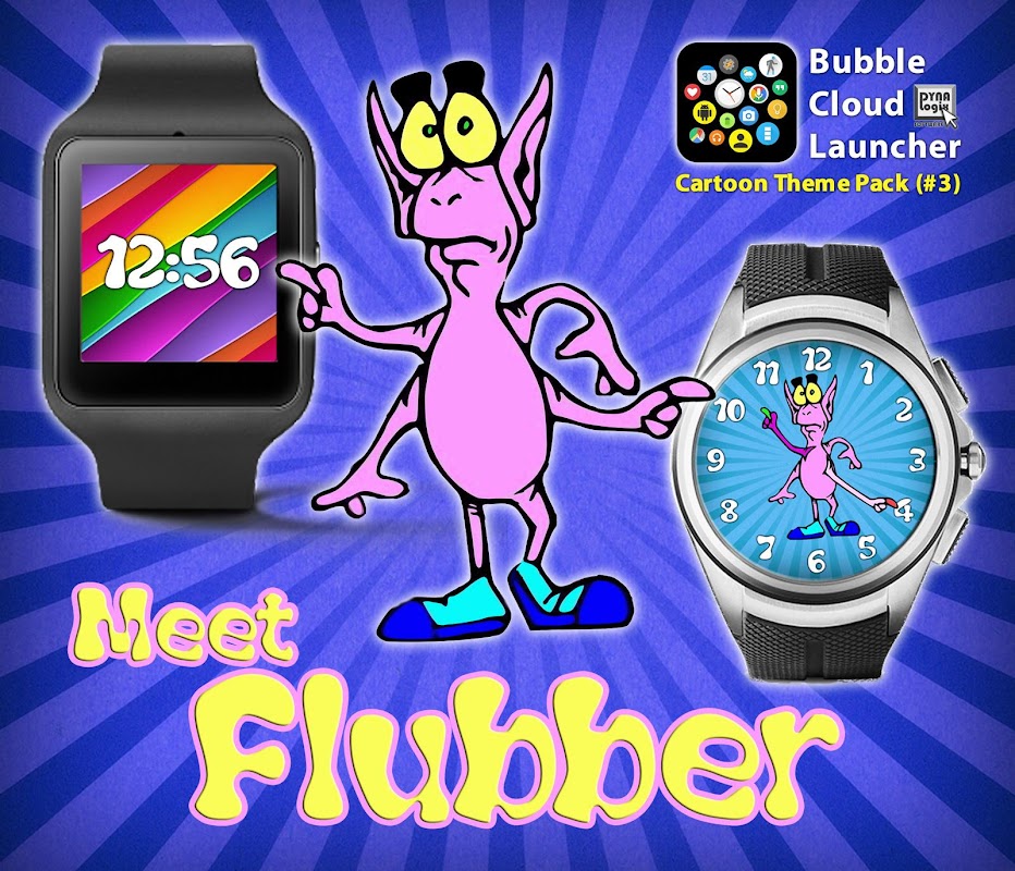 Fullscreen cartoon clocks → Theme Pack 3 for Bubble Cloud Wear OS Watch face app