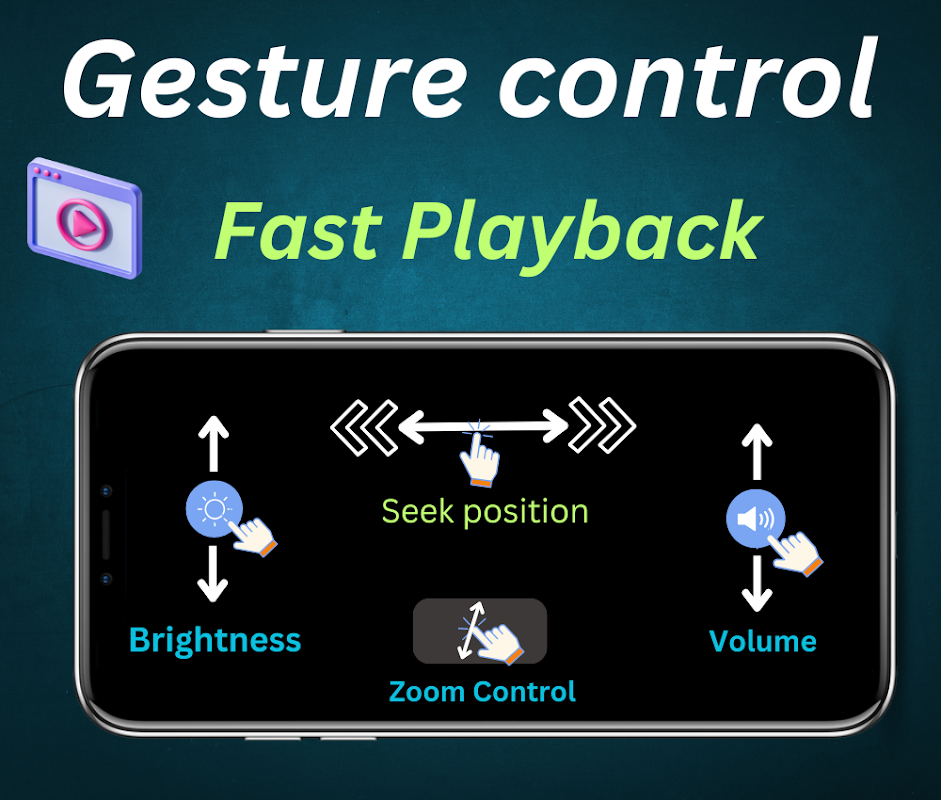 ⭐ Gesture Controls: Control playback with ease—double-tap to play/pause, adjust volume, brightness, zoom, and progress with simple gestures.