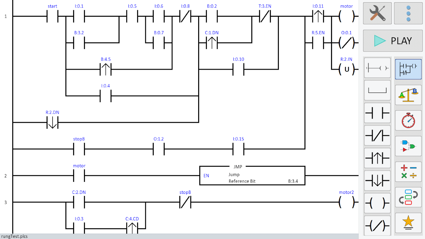PLC Ladder Simulator 2 is the successor of PLC Ladder Simulator, this version comes with big changes like a better and more friendly user interface UI and user experience UX, better use of sub-rungs, more functions blocks, unlimited save files and the possibility to export them to other devices that run the app, and much more.