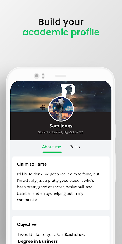 Prepare to apply for college and take control of your future. Join the millions of students in finding their best-fit college matches, discovering scholarship options, getting help with homework – and uncovering ways to expand their educational opportunities. Build connections with people who can help with your college selection process and future goals - from current peers, future classmates, existing college students, and alumni mentors.