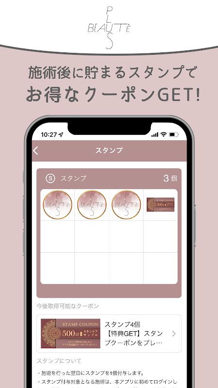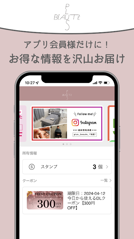 You can receive the latest information and great deals on [plus beaute] through the app. You can also check the menu, your desired time slot, and make reservations from your smartphone at any time. By installing the app, you can use [plus beaute] more conveniently.