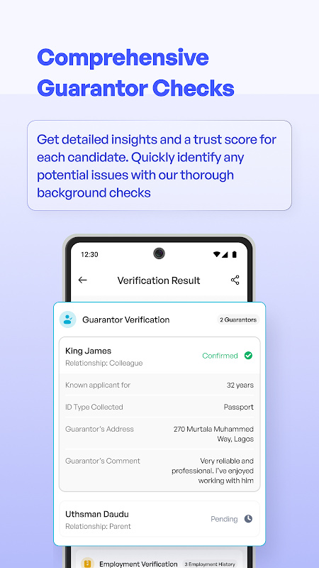 Comprehensive Reports: Get detailed insights and trust scores after verification, helping you make informed decisions.