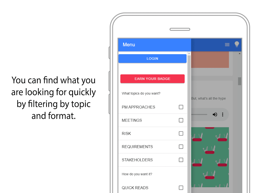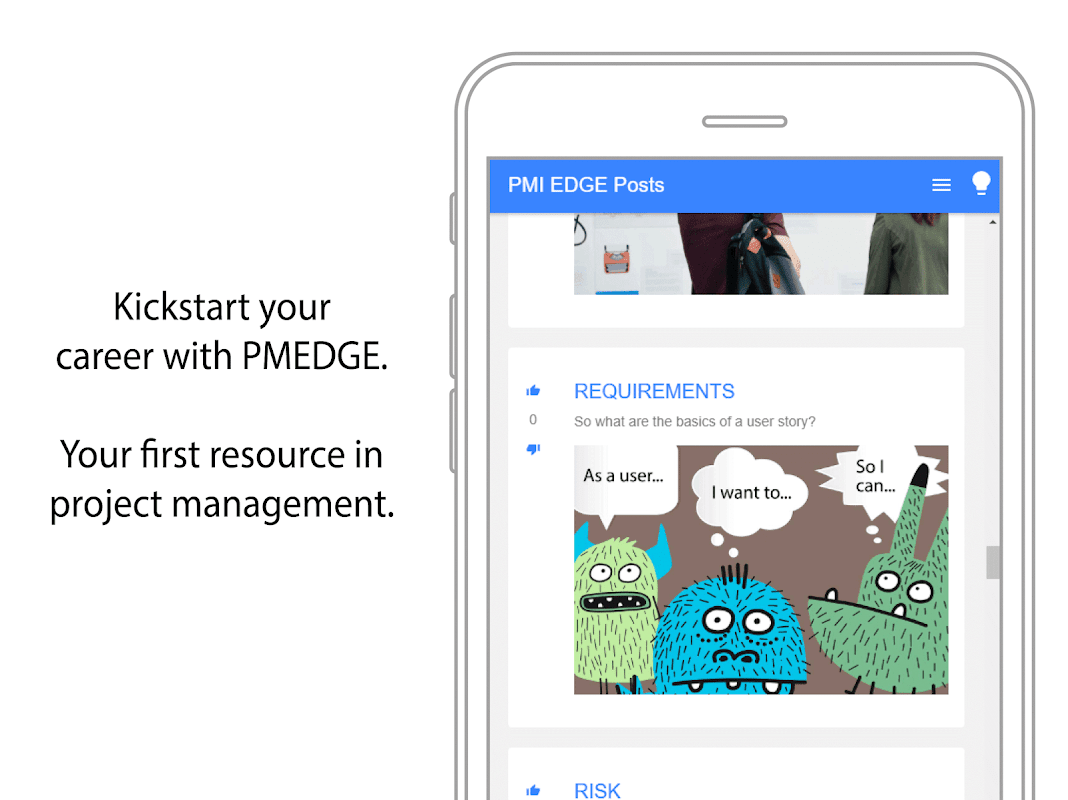 Browse the PMEDGE feed for relevant content to help you gain a foundational understanding of project management. In just a few minutes time, watch a video or skim a quick read to better understand critical topics including project management approaches, risk, requirements, stakeholders, and meetings. Build your confidence in key terms and concepts through flashcards and quick knowledge checks. Jump around or dive deep into each topic.