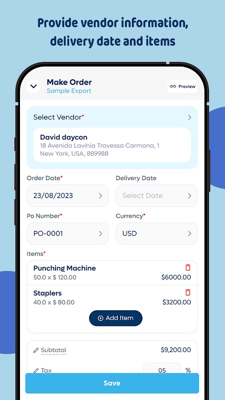 Stay organized. Save time. Grow your business with PO - Purchase Order Generator.