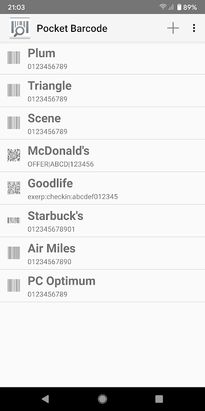 Lightweight and simple app to scan and save your barcodes in one convenient location! Easily display your saved barcodes on your device's screen whenever they need to be scanned. Backup and restore saved barcodes with the import/export feature.