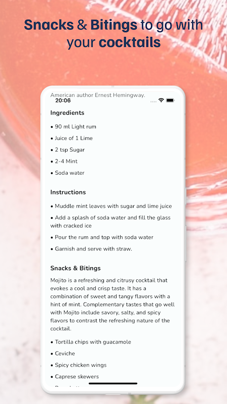 📸 Cocktail Identifier: Snap a photo, and the pocket bartender app will instantly provide the cocktail recipe—perfect for any mixologist or bartender looking to expand their knowledge. Get insights into ingredients, garnishes, and presentation techniques from the best in mixology.