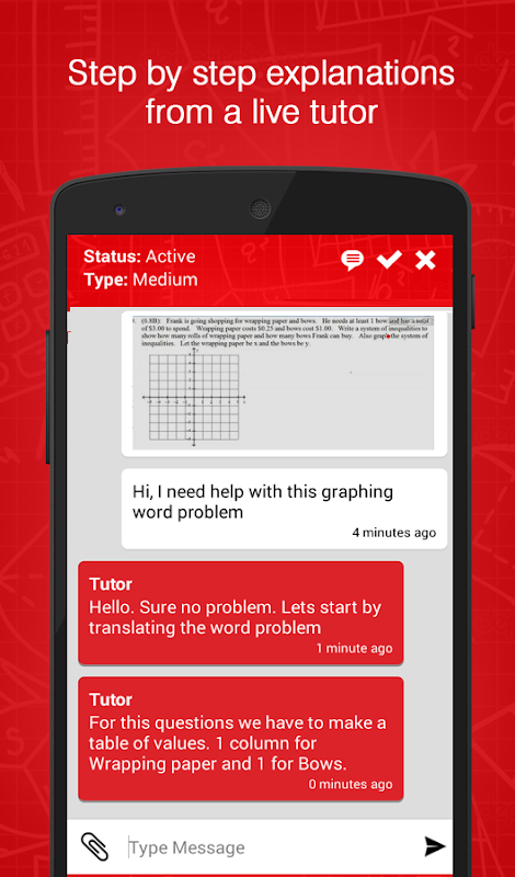 Get a mobile tutor to instantly help you if you're stuck on math homework or if you are studying for a math exam and need help understanding math concepts. Our tutors love math and can handle it all whether it is a quick answer to check your work or step by step explanations to help you understand the process. Pocket tutor is a great solution for students seeking instant math help without the hassle of meeting with a tutor and paying hourly.