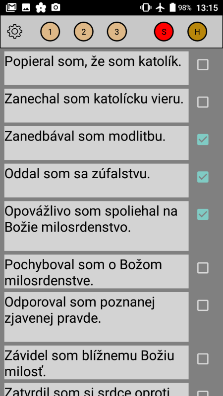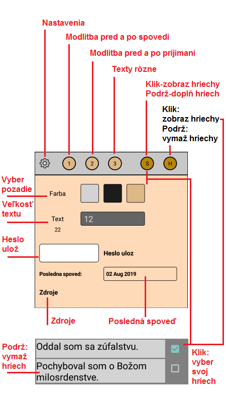* Zapísanie hriechov.