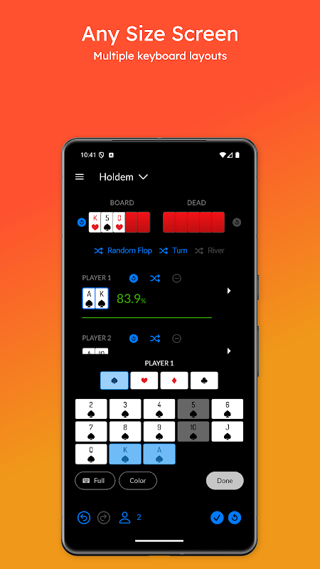 - Colorblind mode, four color deck, colored card backs, plus full light and dark mode support. Configure your app with your favorite settings.