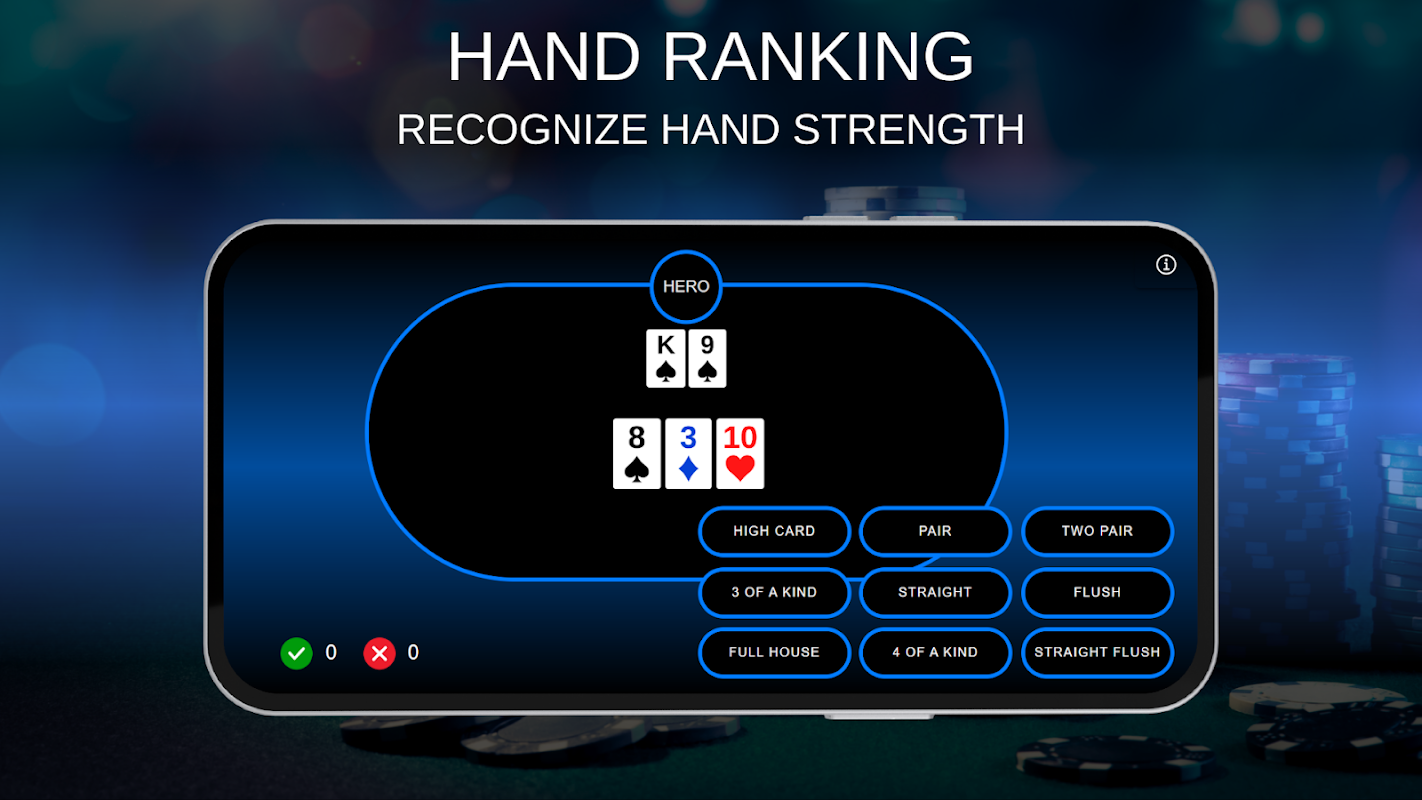 - Hand Ranking: Become a wizard at quickly recognizing and spotting hand strength!
