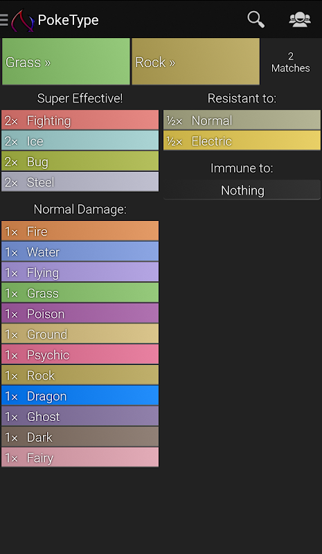 Main Screen: All type combinations, dynamic search for 'mons, moves, abilities and egg groups