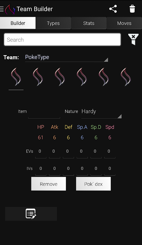 Team Builder: Create teams, add moves and check their stats and type weaknesses