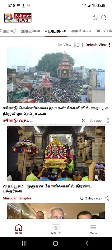 This official Polimer News app makes you stay connected with the latest news stories from India and around the world. Easy access to breaking news, top stories, live TV, photos, videos and more. Our journalists and technology combine to report on Politics, Business, Cricket, Sports, Food, Entertainment and Kollywood.