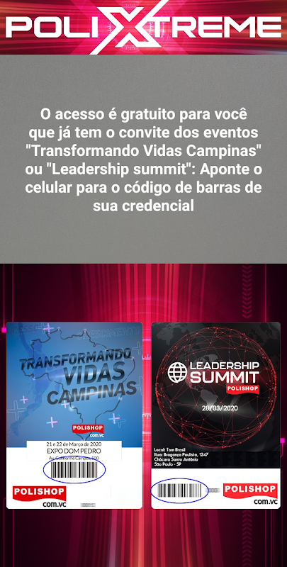 Para você que já adquiriu os convites Transformando Vidas 2020 - Campinas e Leadership Summit 2020, baixe o aplicativo POLIXTREME e realize o credenciamento para a super live POLIXTREME 2020.
