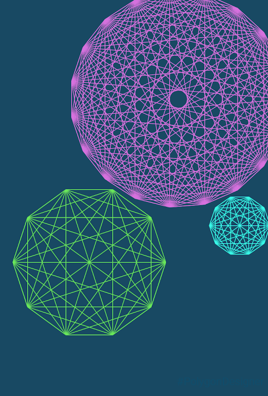 Share with your friends amazing images of polygon lattices, formed by arrangements of edges and diagonals.