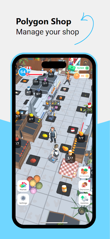 Polygon Shop is a hybrid between the Sims and Arcade Idle games that give you a new experience of gameplay that you have never seen before. with a portrait view that gives you the ability to play the game without needing to rotate your phone like any mini games to let you play wherever you are and enjoy playing the game.