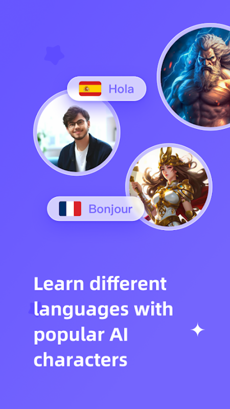With our app PolySpeak, you will never run out of things to talk about! Choose from a wide range of interesting topics, and talk directly to your favorite character from all over the world, including characters who speak Spanish, French, German, and Chinese. The AI-powered chat and conversation feature allows you to practice speaking with the wait-to-speak function, making language learning more interactive and engaging.