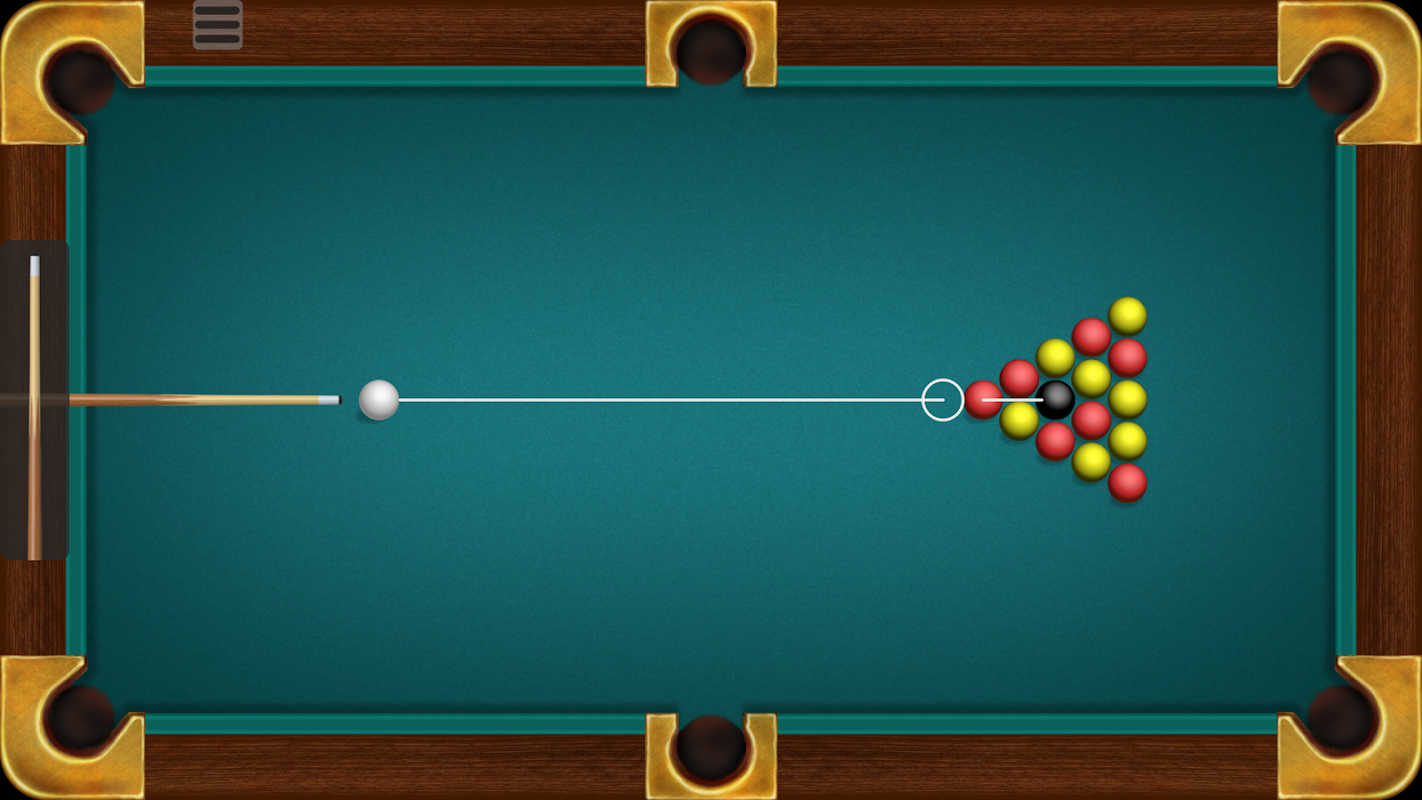 In Blackball pool there are 15 colored balls (7 red, 7 yellow and 1 black). The goal is to pocket all balls of your color group and then the black ball. Player who pots the black too early loses the game. In Pyramid billiards there are 15 white balls and one red. The goal is to pocket any 8 balls before your opponent. You can play alone, versus computer or with 2 players on one device (hotseat).