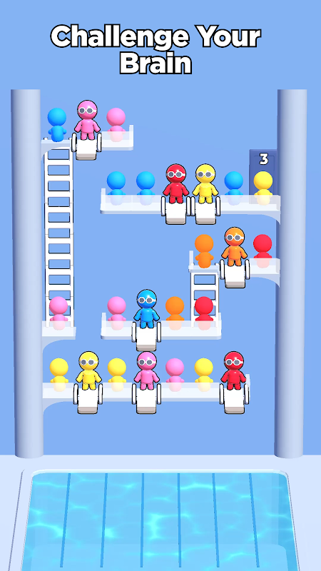 Dive into fun with this tile game! Click on swimmers to send them into the pool. Match three of the same color to watch them start swimming. Can you solve the puzzle and get them all swimming?