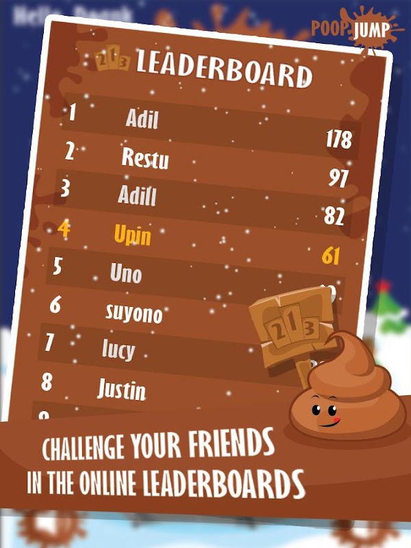 Poop Jump is one of christmas games, poop games, and free games download, with very good graphics. Poop Jump can be played for kids games, but not strategy games, or puzzle games.