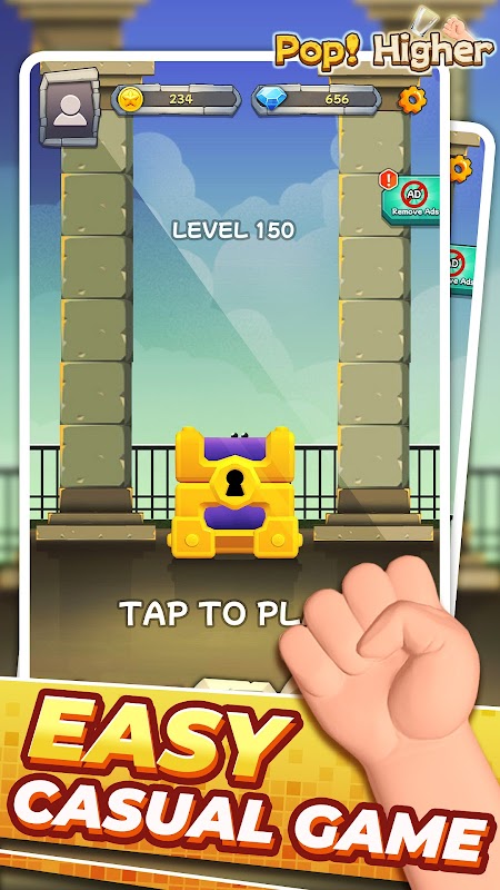 This is a classic game that challenges your reaction speed! Pop ! Higher is a retro-style cup tapping game. In the game, you will be an adventurer. By tapping the floors, you will use the power of elasticity and inertia to shoot gold coins from one cup to another higher cup . Each floor has different adventures and difficulties. You need to show the wisdom and strength of an adventurer to bravely break through the levels and explore unknown treasures.