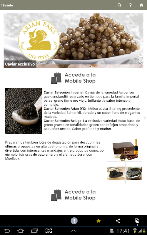 Information events and fashion sales, caviar and gourmet