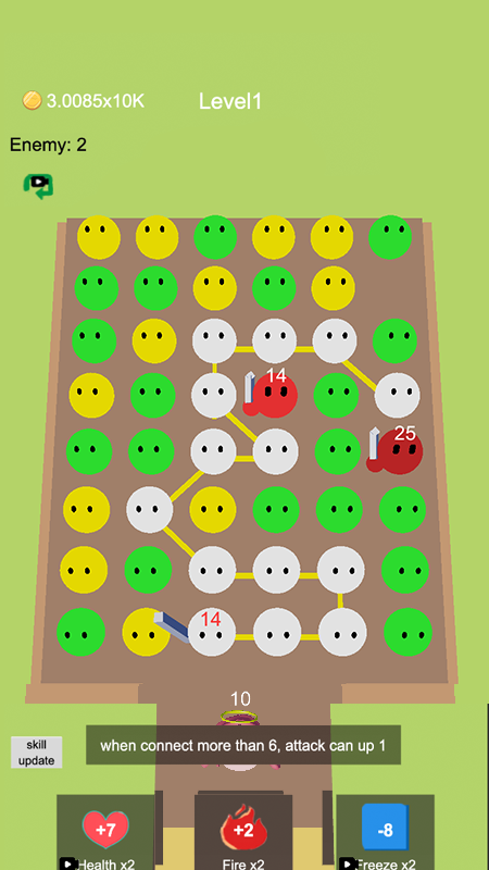 Rescue the Princess! Match 3 or more of the same colored Pop and attack enemy