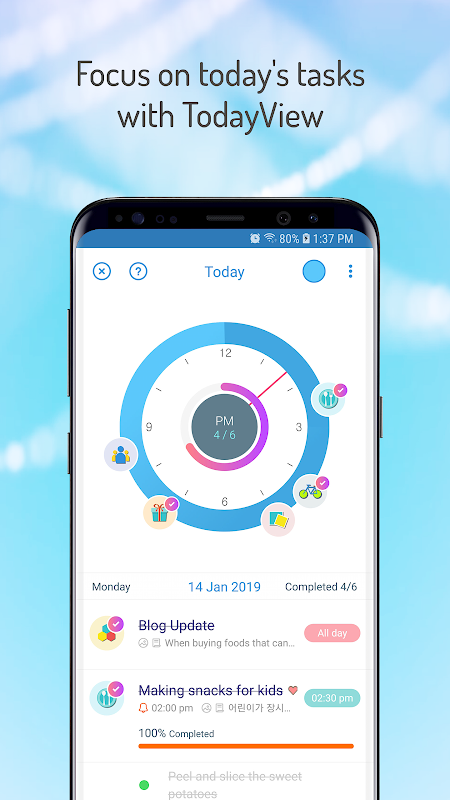 - You can add reminder, checklist and note to each task item.
