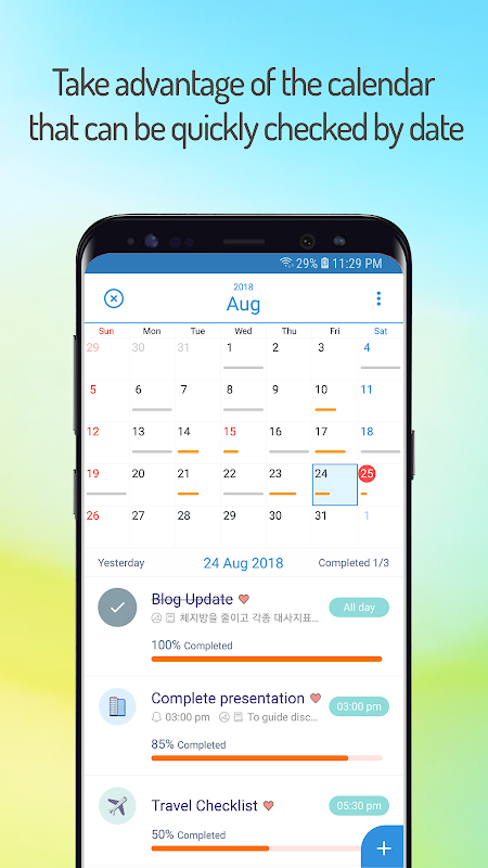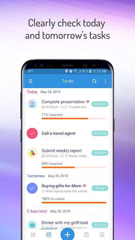 - You can plan today's tasks, tomorrow's tasks, and look back on past tasks.