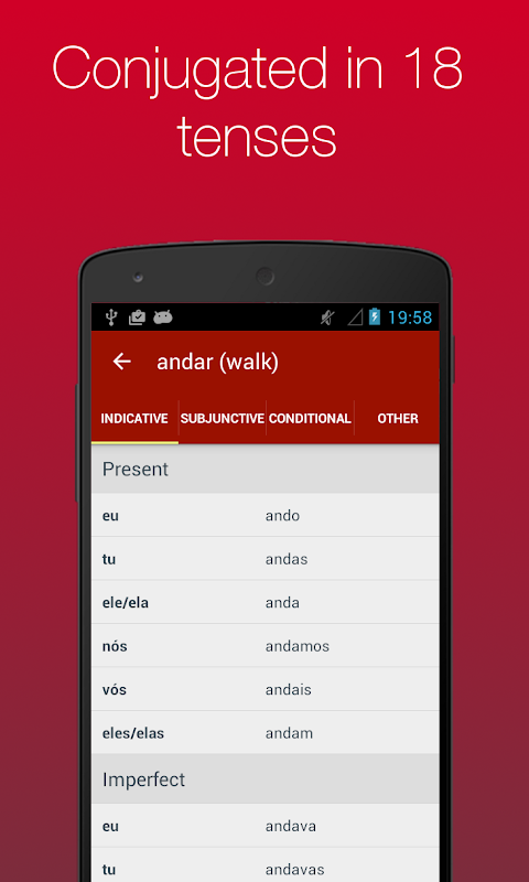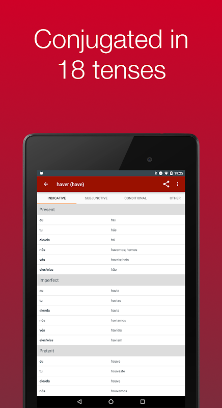 View over 1000 Portuguese verbs in 18 tenses. With simple navigation and built in search, you can find the verb you need in seconds.