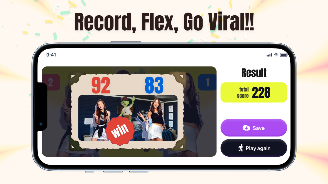 Funergy: Fun Challenge turns your camera into a game — match on-screen poses with your body in real time, go head-to-head with friends, or strike alone for high scores. It’s fast, fun, and made for viral moments.