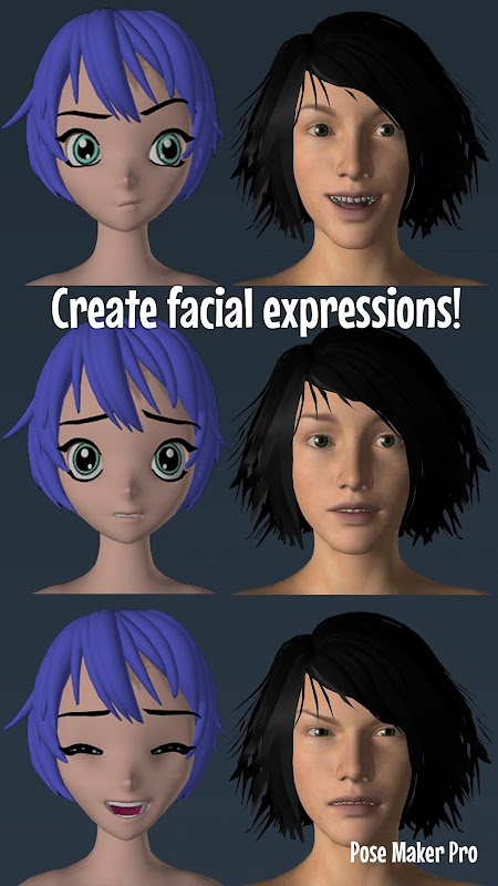 Our anime style characters comes with different head to body ratio and includes basic clothing and hair. You can change the models facial expressions; they eyes, mouth and brows are individually transformable.
