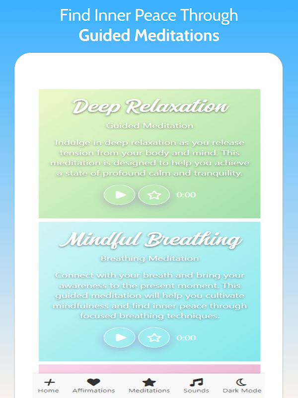 ➕ Listen to sounds and meditations in the background while using other apps or when your device is locked. This feature allows you to multitask and incorporate positivity into your daily routine effortlessly.