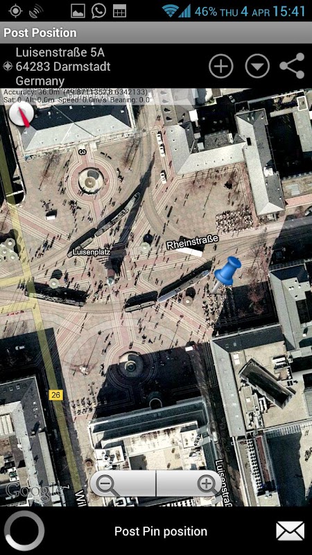 You can also simply start PostPosition and send your position to you friends via SMS, gTalk, Mail, Skype, Line, Tango or WhatsApp.