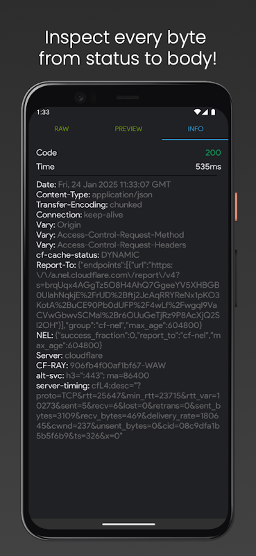 🔹View results in formatted (Pretty), raw text, or preview modes.