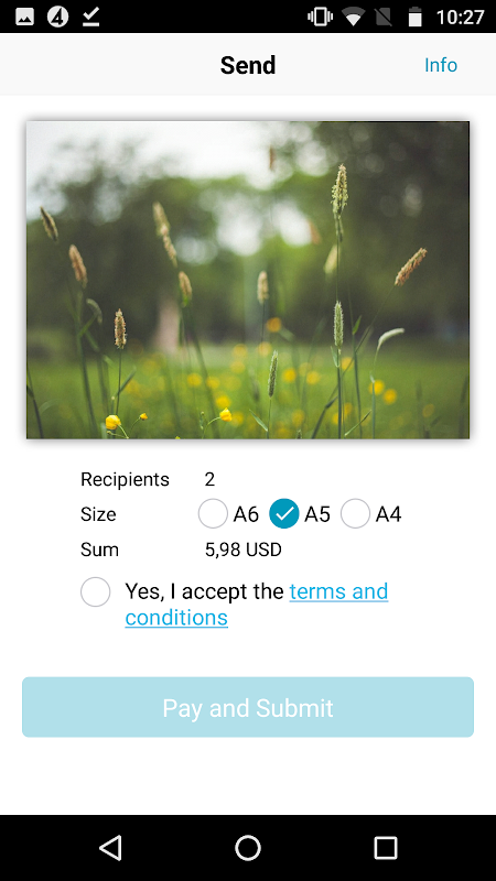 With Postcards in your android device, you can send real physical postcards to everyone in the world, directly to the recipient's mailbox!