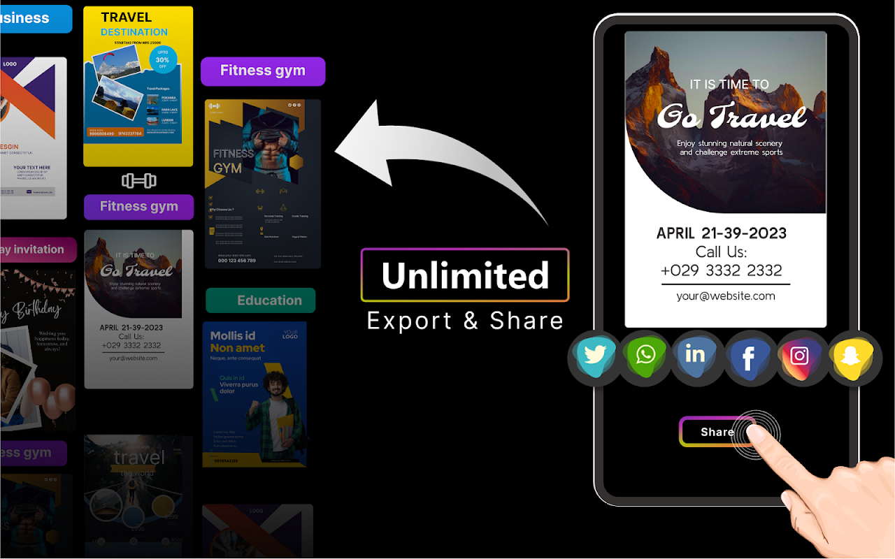 Poster Maker and Flyer Maker let you Create stunning Posters and Graphic Design